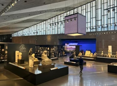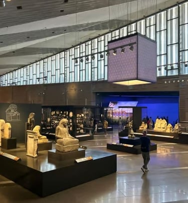 Localizado próximo às Pirâmides de Gizé, é um dos maiores e mais impressionantes museus arqueológicos do mundo. Com uma arquitetura moderna e grandiosa, ele abriga milhares de peças da civilização egípcia, incluindo a coleção completa de Tutancâmon, exposta de forma inédita. Cada espaço foi pensado para proporcionar uma imersão profunda na história, nos mistérios e na grandiosidade do Antigo Egito, conectando passado, presente e futuro em uma experiência única e emocionante.